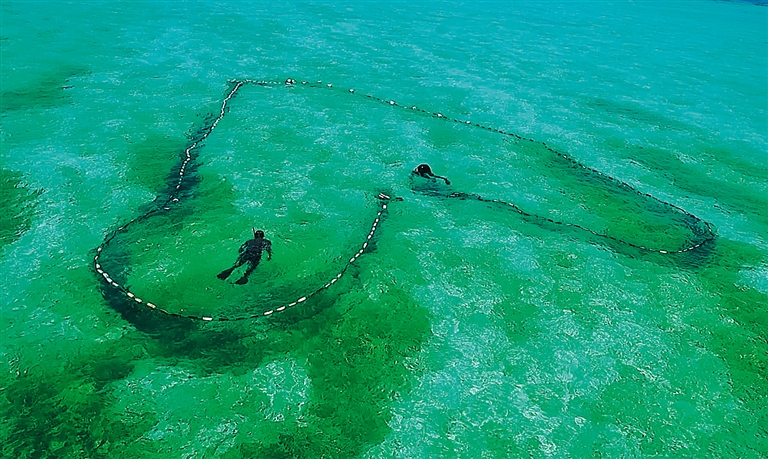 这就是除了潜水作业外,西沙渔民另外一种较有特色的礁盘作业方式--行盘。