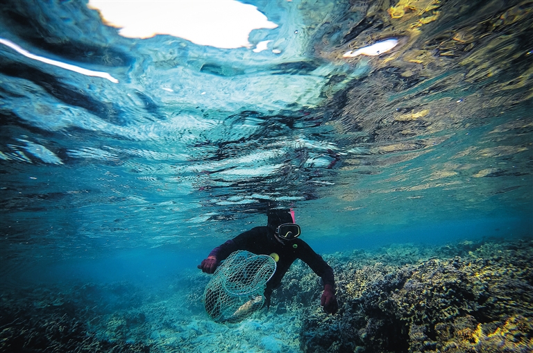 符名友告诉海南日报记者,由于“下氧”捕捞存在一定的危险性,严重时会因为患“减压病”而失去生命,所以一般情况下,他们在作业中会交替下水,可以互相照应,同时也给对方一个体力恢复时间,在水中作业时,不宜在深水区中停留时间过长。