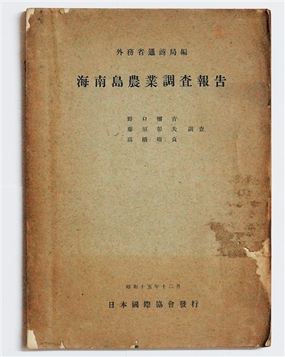 在热带农业资源方面。1939年4月,日军在海南岛登陆之后仅两个月,日本进入海南岛的企业在日本军方的指导下,组成了海南岛农林委员会,据日文资料记载:参加海南岛农林委员会的日本企业有二十八家,包括:“伊藤产业、日本油脂、日窒、日东拓殖、武田长兵卫、大日本制糖、台湾拓殖、南洋起业、海南产业、海南物产、南洋橡胶、南国物产、南洋兴发、梅村、小川、野村合名、古川拓殖、普林斯敦轮胎、三共、明治制糖、盐野义、盐水港制糖、森永、东台湾咖啡、苏门达腊拓殖、铃木”。组成该委员会目的是为了避免日本企业之间不必要的竞争和重复建设,领衔海南岛农林委员会者是台湾拓殖株式会社。为了宣传海南岛的“农业开发”,该委员会还在1941年发行了自己的日文版刊物《海南岛》,刊登在海南各日本企业的广告以及“开发”的新闻,介绍关于海南岛农业的研究报告。