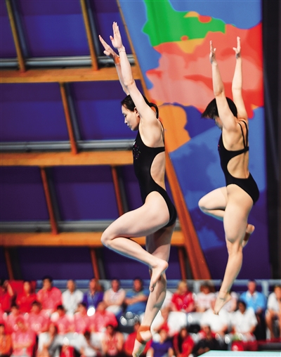 喀山世锦赛是吴敏霞的第8次世锦赛之旅,她和施廷懋配合,从第一跳就一路领先,最终以351.30分夺得了女双3米板的冠军。加拿大组合阿贝尔/维尔以319.47分名列第二,第三名是澳大利亚组合米尔斯/秦帆,成绩是304.20分。