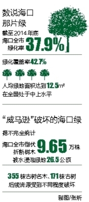据介绍,去年超强台风“威马逊”袭击导致海口许多大树被拦腰折断甚至连根拔起,据不完全统计,海口全市倒伏、折断树木9.65万株,被水浸泡绿地26.5公顷,海口市355株古树名木、171株古树后续资源全部受到不同程度破坏,主城区77株古树名木和后续资源受灾,15株古树及古树后续资源折毁、死亡等。为此,园林部门对滨海大道的非洲楝等大树全部进行了重度修剪,对其他路段的速生行道树同样进行了重度修剪,以确保几年内不会导致行道树受台风太大影响。