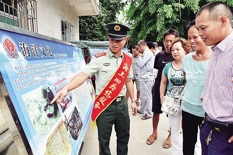 7月28日上午,海南海警一支队与海口市美兰区人民街道捕捞社区居委会组织便民服务队,深入社区开展“法律宣传、卫生医疗、便民服务”等活动,帮助渔船民做好开渔前的准备工作。
