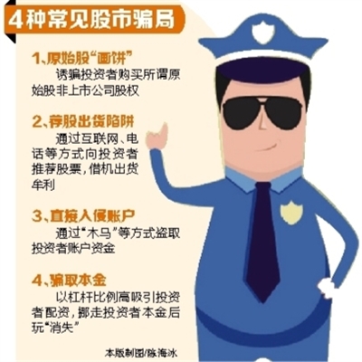 经过走访及查询资料,记者总结了四种常见违法行为:分别是诱骗投资者购买所谓原始股或非上市公司股权;通过互联网、电话等方式向投资者推荐股票,兜售基金、股权等投资产品;通过“木马”等方式盗取投资者账户资金;通过吸引投资者融资炒股,骗取投资者的本金。