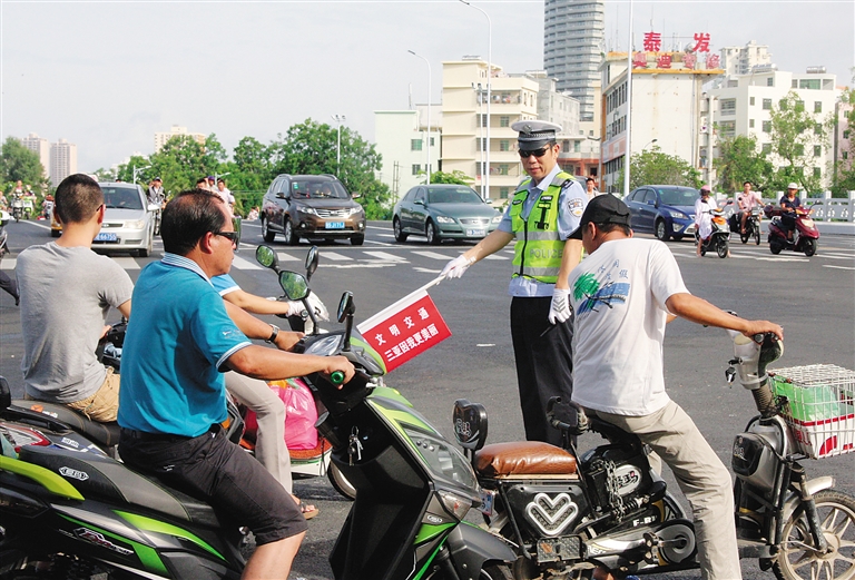 海口市电动车数量多,秩序比较混乱,驾驶人违法违规行为也比较多,公安厅多次会同海口市政府,指导海口市公安局开展电动车的综合整治,通过办理牌照、强化路面执法等综合举措使电动车乱象得到了一定的遏制。