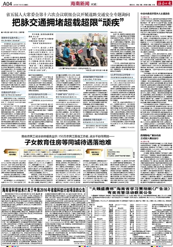 省住建厅厅长丁式江答:交通问题很多的源头在规划上。近几年城市交通拥堵、停车难等“大城市病”使得规划问题受到越来越多关注。在海南,城市原有的总规和控规中,也对道路交通有具体指标,比如对停车场、城市公交场站等提出要求,但是这些指标没有进行过系统考虑。2010年国家住建部通知要求城市制定道路交通综合规划,并且出台相关办法和具体的编制综合性交通规划的导则。目前,我省海口、三亚已在着手进行城市综合性交通规划,下一步还要督促市县加快编制规划。