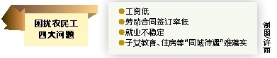 调研发现,工资低、劳动合同签订率低、就业不稳定,子女教育、住房等“同城待遇”难以落实等四大问题困扰农民工。