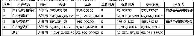 根据中国信达资产管理股份有限公司海南省分公司与白沙黎族自治县国有资产管理办公室签订的债权转让合同,中国信达资产管理股份有限公司海南省分公司已将依法享有的对下列借款人和担保人的债权及担保权利依法转让给白沙黎族自治县国有资产管理办公室,现以公告方式通知债务人和担保人。请借款人和相应担保人或借款人、担保人的承继人向白沙黎族自治县国有资产管理办公室履行还款义务(若借款人、担保人因各种原因发生更名、改制、歇业、吊销营业执照或者丧失民事主体资格等情形,请相关承债主体、清算主体代为履行义务或者承担清算责任)。