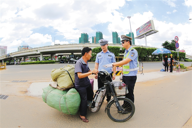 经过深入细致研究和部署,7月22日,海口市公安局全警动员,以整治电动车乱象为切入点,采取“突出重点,以点带面,全面铺开”的整治方法,打响交通整治“第一枪”。