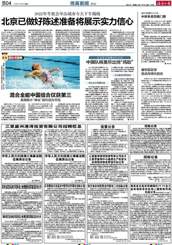 海南日报 体育新闻综合 016 2015-07-311 2015年07月31日 星期五