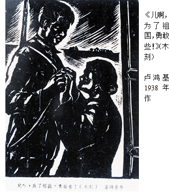 1938年1月,正在国立杭州艺专就读的卢鸿基随学校流亡到了长沙,在这里,他遇见了族叔、时在湖南人民抗敌后援会工作的中共地下党员卢良,在卢良的鼓励和帮助下,他积极参与各种抗日救亡活动,如参加集会、书写标语、绘制壁画等,特别是他用木刻刀作武器,创作了“母亲”、“故乡消息”等一批反映抗日的木版画——一如鲁迅所言:“当革命时,版画之用最广,虽极匆忙,顷刻能办。”当时茅盾先生见到这些木刻后很喜欢,特介绍给田汉先生主编的《抗战日报》发表,因此,卢鸿基便步入了其艺术人生中的一个辉煌时期。