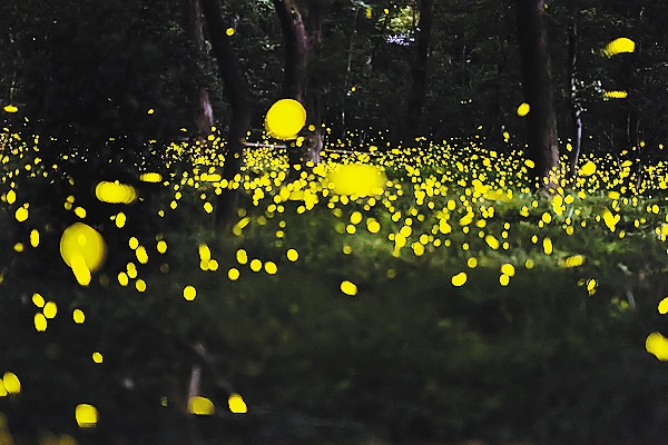 “萤火虫,夜夜飞”,萤火起舞的景况,如今就是在乡下,也渐渐难以寻觅了。“母亲的身影投射在昏黄的窗户上/那炊烟袅袅/呼唤孩子的回来/闪闪的萤火虫是一盏盏的小灯/照亮了回家的路”。这样和谐美好的诗句,怕也只是梦里的一份遥想和牵念了吧。