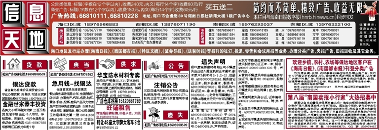 欢迎在海南日报 南国都市报刊登广告