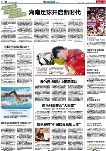 海南日报 体育新闻综合 016 2015-08-051 2015年08月05日 星期三