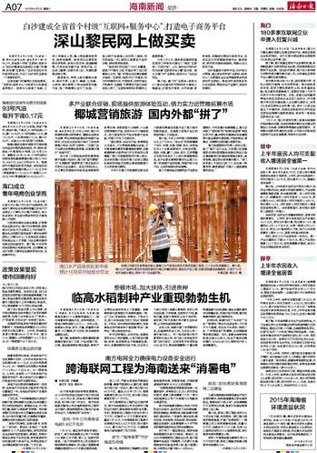 海南日报 海南新闻经济 007 2015-08-051 2015年08月05日 星期三