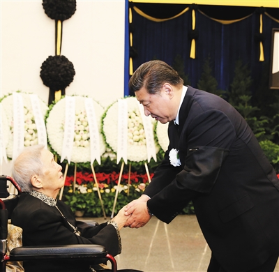 上午10时许,习近平、李克强、张德江、俞正声、刘云山、王岐山、张高丽等,在哀乐声中缓步来到张劲夫同志的遗体前肃立默哀,向张劲夫同志的遗体三鞠躬,并与张劲夫同志亲属一一握手,表示慰问。