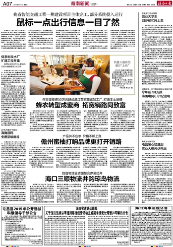 海南日报 海南新闻经济 007 2015-08-071 2015年08月07日 星期五