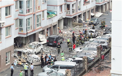8月7日拍摄的大连市甘井子区一居民楼液化气爆炸事故现场。 当日中午,大连市甘井子区一居民楼管道液化气发生爆炸,造成1人死亡,6人受伤。