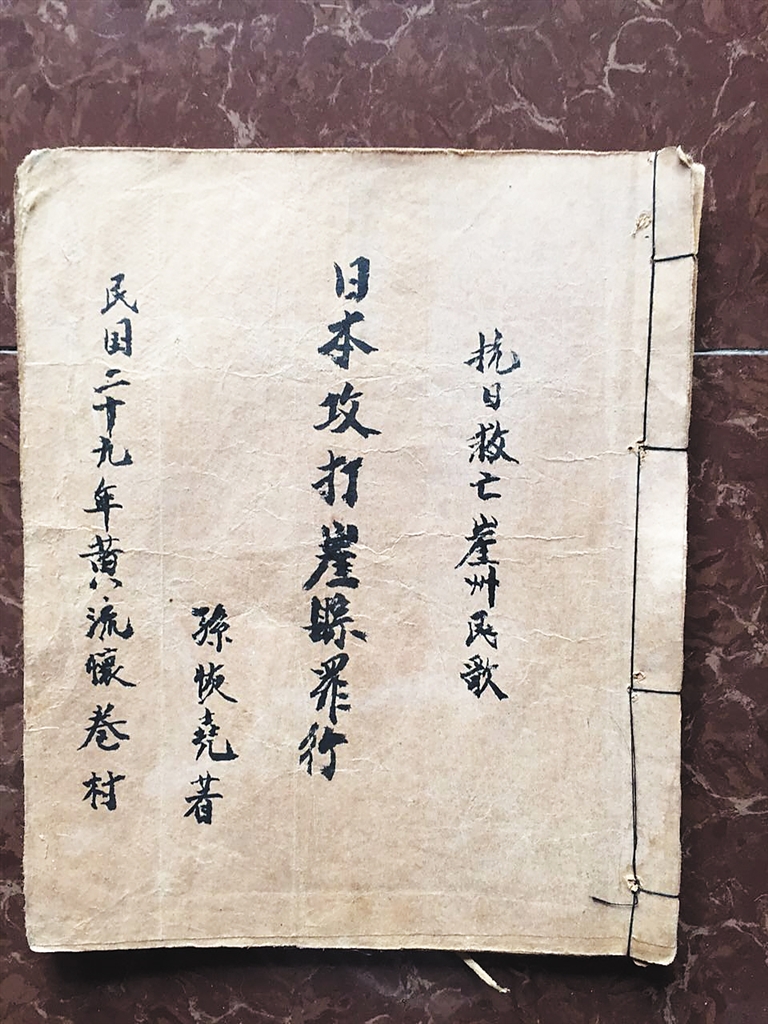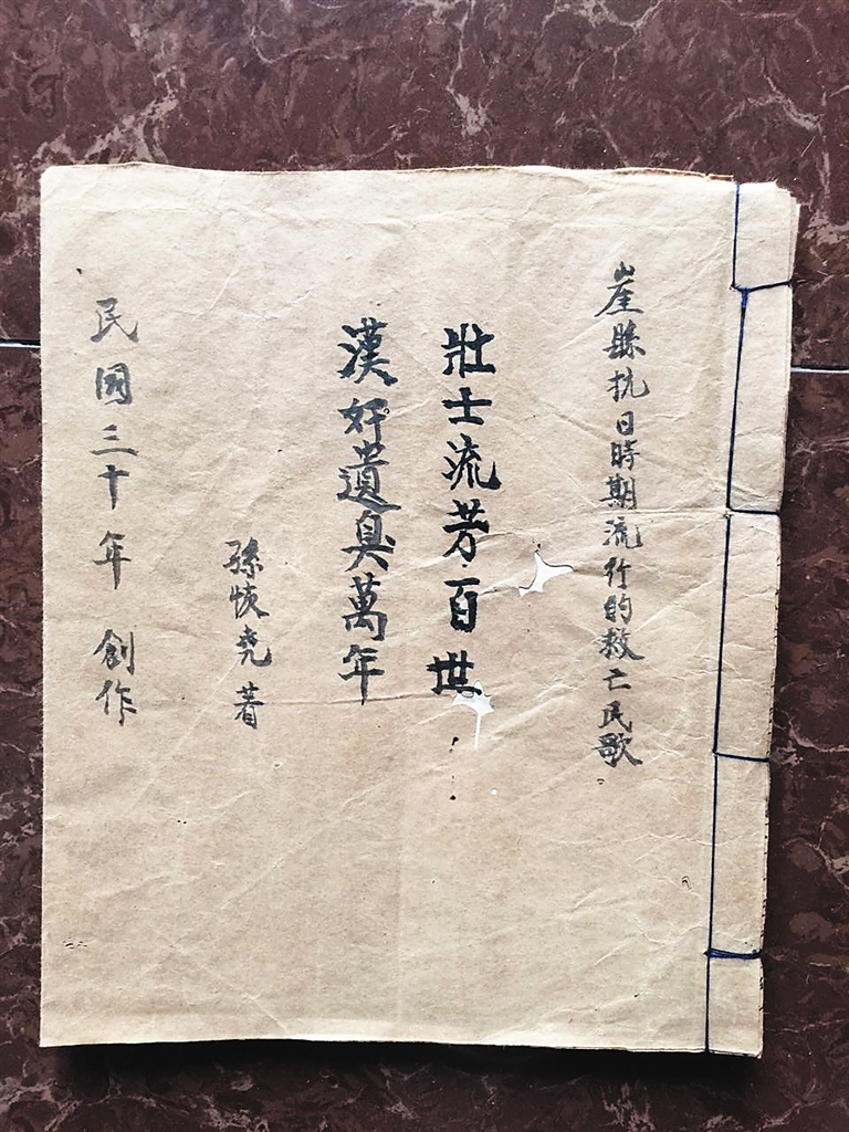 崖县抗日初期,革命文艺如异军突起,势不可挡。因此,以抗日为题材的崖州民歌,真是指不胜屈,蔚为大观,仅1986年3月,笔者在民间共收集到125首,后取《三亚的抗日民谣》为书名由三亚市民政局印行。从这些民歌里,均可足以证明劳动人民都把自己的生命、信念和生活都交付给党和民主政府。直至1931年冬,崖县中学学生孙恢尧(第五区怀卷人),拿起了“崖州民歌”这杆锋利的武器,编写了一册《国难歌》,一五一十地揭露了日军入侵东北三省的罪恶行径,唤醒民众团结起来抗日救国。1939年2月,日军占领崖县,孙恢尧又继写《日本军攻打崖县罪行》、《日寇侵占崖县血泪案》、《同仇敌忾 消灭日军》、《日军血洗乐罗惨状》和《壮士流芳百世 汉奸遗臭万年》等前后共6册民歌,均用油印和手抄方式,散发到民间去传唱,极具号召力。立即打动了广大群众的心,一时现出有钱的出钱没钱的出力的抗日热潮。