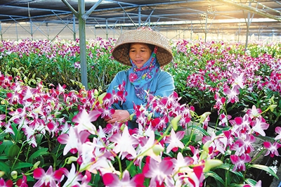 “当地的村民不仅可以到产业园上班,还可以加入合作社,在公司的带领下一起种植兰花。”李伟钢介绍,带动农民种植兰花有多项补贴:种植大棚补贴,兰花种苗补贴,企业免费技术培训、保底收购兰花等。这样一来,农民不仅有了土地租金和工资的收入,还有种花的收入,其中仅种花纯收入每年每亩就可达4万元。