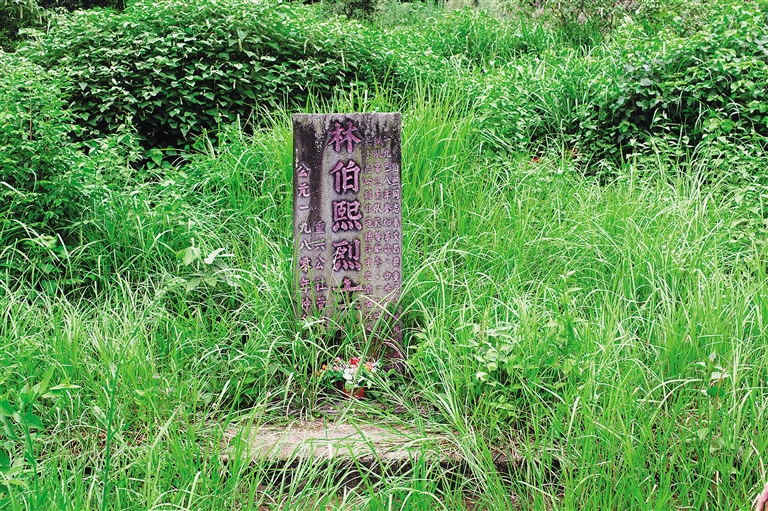文昌市重兴镇附近的一个木材厂边,一座简朴的墓碑伫立着,椰林苍翠,草木葱茏,描红的“林伯熙烈士之墓”几个大字格外鲜艳,把我们的记忆拉回到70多年前血雨腥风的抗战年代。