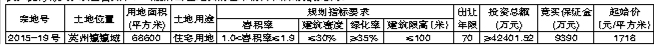 经陵水黎族自治县人民政府批准,陵水黎族自治县国土环境资源局决定以挂牌方式出让2015-19号宗地项目的国有建设用地土地使用权。现将有关事项公告如下:一、挂牌出让地块的基本情况和规划指标要求