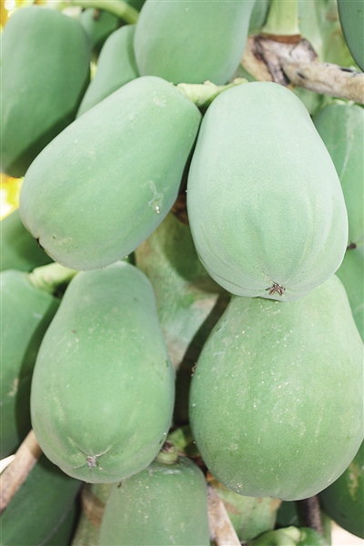 儋州较早引进并成规模栽培的木瓜为“日升”品种,产品主要以水果的形式供应内地市场。