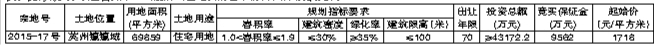 经陵水黎族自治县人民政府批准,陵水黎族自治县国土环境资源局决定以挂牌方式出让2015-17号宗地项目的国有建设用地土地使用权。现将有关事项公告如下:一、挂牌出让地块的基本情况和规划指标要求