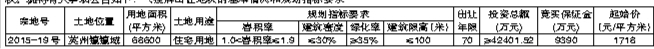经陵水黎族自治县人民政府批准,陵水黎族自治县国土环境资源局决定以挂牌方式出让2015-19号宗地项目的国有建设用地土地使用权。现将有关事项公告如下:一、挂牌出让地块的基本情况和规划指标要求