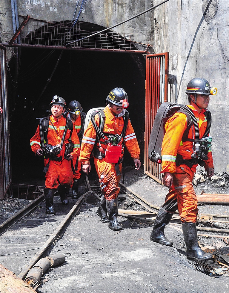 8月12日,救援人员走出事故矿井。 贵州省普安县楼下镇政忠煤矿8月11日晚发生的煤与瓦斯突出事故已确认有10人死亡,5人受伤,截至发稿时仍有3人失去联系。目前,事故救援工作仍在进行。 新华社记者 刘续 摄