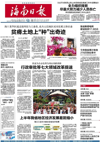 海南日报 头版 001 2015-08-131 2015年08月13日 星期四