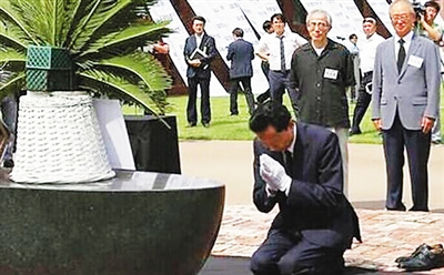 当天下午,鸠山参观首尔西大门监狱史迹。在刻有100多名日本殖民统治时期遇害者姓名的纪念碑前,鸠山献花,然后双膝跪地而拜。