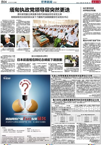 海南日报 世界新闻动态 016 2015-08-141 2015年08月14日 星期五