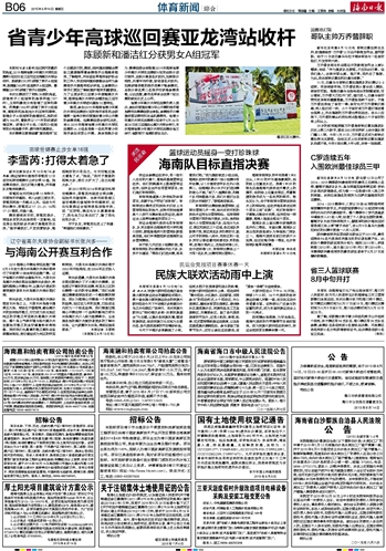 海南日报 体育新闻综合 018 2015-08-141 2015年08月14日 星期五