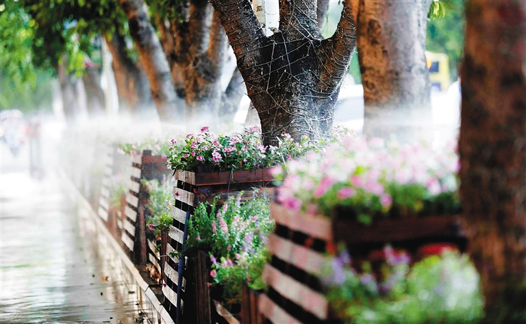 街头花卉微灌省水又省力