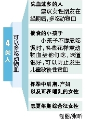目前,除了鹿血价格较贵外,猪血、鸭血、鸡血、羊血、牛血、狗血等市场上都可以买到,补血效果都差不多。但是,袁勇表示,在动物血的选择上,没有经任何加工过的动物血最好。很多人认为动物血不干净,其实,没有经过任何加工的动物血是物美价廉的好食品。炖一盅鸭血汤,放点沙参、玉竹、银耳,可起到祛湿、生津、补水的功效;猪血加芥菜叶、葱花、黄酒,具有清凉降火、补阴的功效,每周1次,效果更佳。