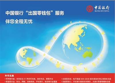 据介绍,中行最近新推出的外币现钞“出国零钱包”特色服务,只须客户通过该行指定网点预约兑换币种和金额,即可搭配不同面额的外币现钞,使客户境外出行小额消费更轻松。