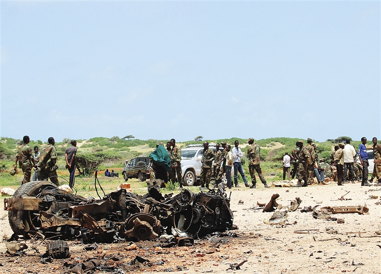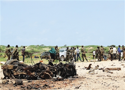 索马里极端组织“青年党”宣称制造这起袭击事件。非洲联盟和索马里政府军近日正在加紧在索南部地区清剿“青年党”武装分子。