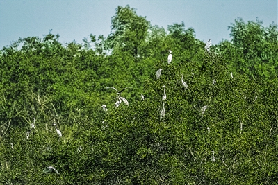 这个夏季,海口酷暑难耐,高温天气比往年要长,然而在海南东寨港国家级自然保护区,却透着缕缕清凉。如果说,冬季,候鸟们会选择在东寨港避寒,而夏季,它们也或许选择在这里避暑吧。成片的红树林,覆盖在海边,犹如大自然的“空调”,让这里的温度要低上几度。