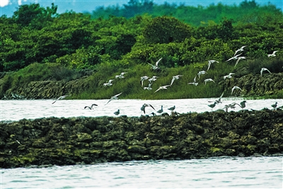 据介绍,在东寨港红树林里,生活着204种鸟类、115种软体动物、119种鱼类、70多种蟹类、40多种虾类,是物种的基因和资源的宝库。