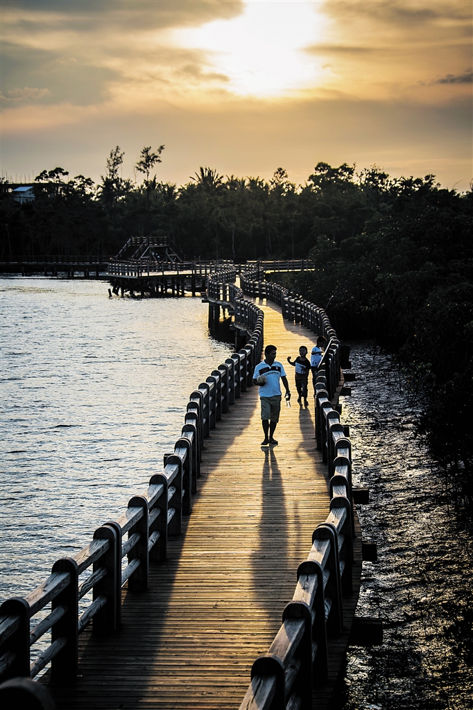 或可垂钓,或可捉蟹,或是欣赏四周岸上那葱茏翠绿的椰林,情趣可谓是“独此一处”了。