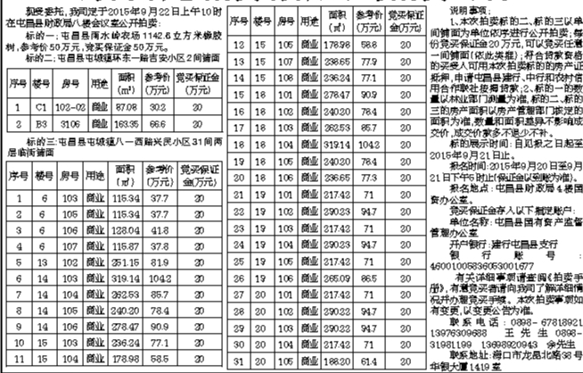 海南荣丰华拍卖公司拍卖公告 第0902期