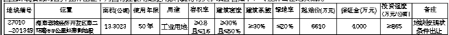 五、其他事项:(一)27010-201349号地块用于建筑节能反射隔热涂料项目建设。(二)竞买成交当天签订《成交确认书》,并在10个工作日内与我局签订《国有建设用地使用权出让合同》,竞买保证金自动转作受让地块的合同价款,合同签订后1个月内必须缴纳高于出让价款60%的首付款,余款按出让合同约定的时间付清。(三)受让人取得土地使用权后,应严格按照规划要求建设。涉及水务、绿化、环保、消防、交通管理等应符合国家和海南省的有关管理规定。(四)成交价款不含各种税费(耕地占用税及相关税费由竞得人按有关规定缴纳),挂牌佣金按有关规定收取。(五)本公告未尽事宜详见《澄迈县国有建设用地使用权挂牌出让手册》。