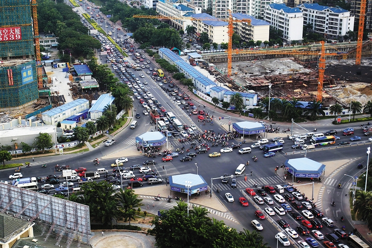 治理城市交通,不仅要完善道路交通网等硬件设施,还要提高管理等软件能力。目前,三亚各主要交通路段和十字路口仍然存在行人、非机动车、机动车混杂拥挤和抢道逆行、违规占道等现象,特别是在上下班高峰期和旅游旺季更为严重,致使城市交通秩序混乱、道路更加拥堵。