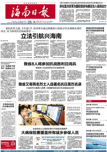 海南日报 头版 001 2015-08-251 2015年08月25日 星期二