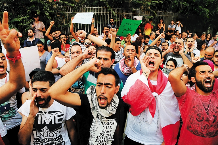 8月24日,在黎巴嫩首都贝鲁特,示威者在政府大楼附近集会。当日,发生的军警与示威民众冲突已造成99名警察和61名平民受伤。本月22日,数千名当地民众聚集举行示威活动,抗议政府迟迟未能解决持续一个多月的垃圾危机。 新华社/路透