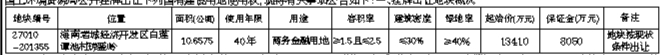 二、竞买人资格:(一)中华人民共和国境内外的法人和其他组织(除法律另有规定者外)均可参加竞买。属境外机构(含港、澳、台地区)申请参加竞买的,按照规定需要提交商务主管部门核发的《外商投资企业批准证书》和工商主管部门核发的《营业执照》。本次挂牌出让不接受联合竞买。(二)本次国有土地使用权挂牌出让按照价高者得原则确定竞得人。三、竞买申请和登记:有意参加竞买者应于2015年9月4日—2015年9月25日下午17时整(北京时间)到澄迈县国土环境资源局五楼土地交易所(或海南省政务服务中心二楼省公共资源交易中心22号窗口)查询和购买《澄迈县国有建设用地使用权挂牌出让手册》,并按挂牌出让手册的具体要求报名参加竞买。报名时,竞买申请人应缴交竞买保证金(以保证金到账为准)四、挂牌报价时间和地点:挂牌起始时间:2015年9月18日 上午11时整(北京时间)。挂牌截止时间:2015年9月28日 上午11时整(北京时间)。挂牌地点:海南省政府会展楼二楼省公共资源交易服务中心土地交易厅进行。本次挂牌出让活动报价阶段只接受书面报价,不接受电话、邮寄、电子、口头等其他方式报价。五、其他事项:(一)竞买成交当天签订《成交确认书》,并在10个工作日内与我局签订《国有建设用地使用权出让合同》,竞买保证金自动转作受让地块的合同价款,合同签订后1个月内必须缴纳不低于出让价款60%的首付款,余款按出让合同约定的时间付清。(二)受让人取得土地使用权后,应严格按照规划要求建设。涉及水务、绿化、环保、消防、交通管理等应符合国家和海南省的有关管理规定。(三)成交价款不含各种税费(耕地占用税及相关税费由竞得人按有关规定缴纳),挂牌佣金按有关规定收取。(四)本公告未尽事宜详见《澄迈县国有建设用地使用权挂牌出让手册》。