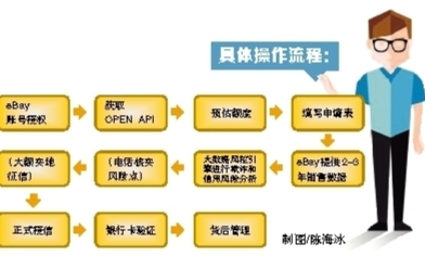 目前,宜信小贷积极开拓金融大数据来源,提供多样化的融资产品,通过和eBay的合作推出”商贷通”贷款产品,目标客户为中小电商。宜信小贷在获取到卖家在eBay平台上的交易数据,再结合其他第三方平台的数据,譬如ERP软件中的订单数据,物流服务公司的物流及仓储数据等,用于评估是否向申请人发放贷款。更具特色的是,这个贷款模式完全是互联网金融产品,从申请借款、信用评估,到放款、还款,整个借款流程全部在线上完成。申请者需要线上填写申请表,线上上传身份证正反面照片以及申请人本人手持身份证照片,授权商通贷访问客户在电商平台(ebay, amazon, wish, 速卖通,淘宝和天猫)上的数据。