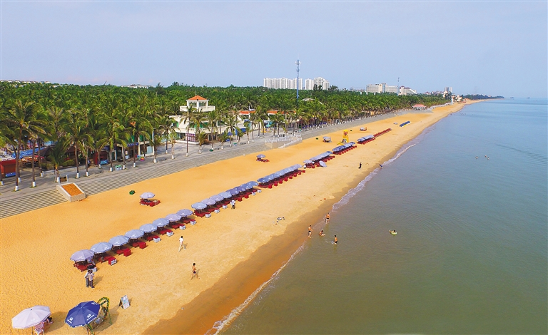 8月27日上午, 去年遭台风破坏的海口假日海滩海岸线修复一新,正式对游人开放。据了解,海口假日海滩及印象剧场海岸线应急修复7月底完工,这也是去年两次强台风袭击后,海口市修复的第三段城市海岸线。在海口假日海滩景区,新修复的海岸线设施一改过去破旧、狭窄的形象,以宽敞、开放、新潮的面貌出现在游人面前。 本报记者 古月 摄