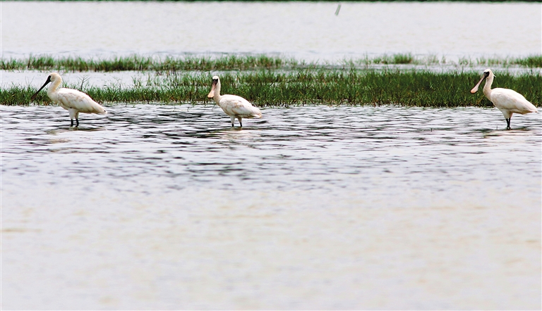 国际上将黑脸琵鹭作为湿地环境质量的指示性物种。今年年初,香港观鸟会公布的2015年黑脸琵鹭全球普查结果显示,自普查以来黑脸琵鹭今年首次记录超过3000只,总数为3259只,比上一年的2726只足足多了533只,增长幅度达到19.6%。其中,我国共记录到330只,约占总数的10.1%。
