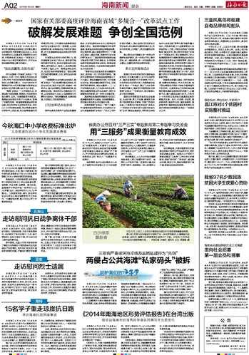 海南仅用半年时间完成《海南省总体规划(征求意见稿)》,这与中央深改办、国家各部委的大力支持密不可分。中央深改办先后两次派人来海南参加省部“多规合一”沟通会,提出了许多宝贵的意见和建议,国家有关部委积极支持海南“多规合一”改革试点,表示继续从多方面支持海南。